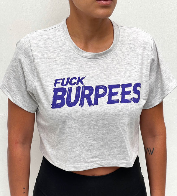 CROP TOP CON MANGAS FUCK BURPEES - GRIS CLARO