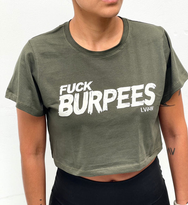 CROP TOP CON MANGAS FUCK BURPEES - VERDE MILITAR