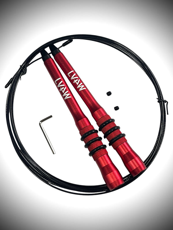 Rótula ergonómica, sistema de rodamientos avanzados, y balineras para una excelente rotación, mangos en aluminio reguladores de longitud con anillos antideslizantes, protectores en los extremos y guaya en acero recubierta en nylon. Incluye llave bristol y repuestos de tornillos (2 unidades). Ideal para trabajos de velocidad y deportistas de alto rendimiento.