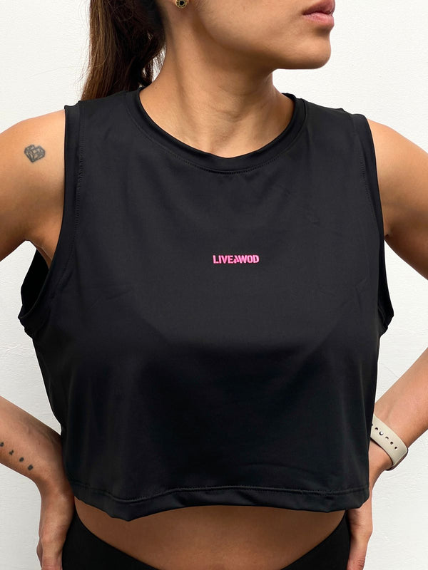 CROP TOP DRYFIT - LIVE4WOD NEGRO/FUCSIA